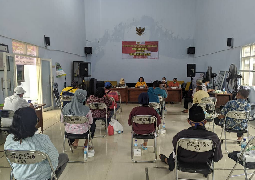 Dalam kegiatan tersebut membahas apa saja hal-hal yang perlu diperbaiki dalam hal pembangunan di wilayah kelurahan pojok. Kegiatan ini dibatasi jumlah peserta musyawarah dikarenakan kondisi pandemi, jadi hanya Ketua RW dan Ketua Lembaga/Organisasi yang ada di Kelurahan Pojok. Tentunya tetap memperhatikan protokol kesehatan dengan menjaga jarak dan memakai masker