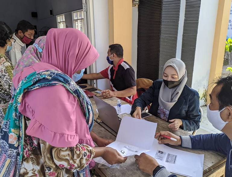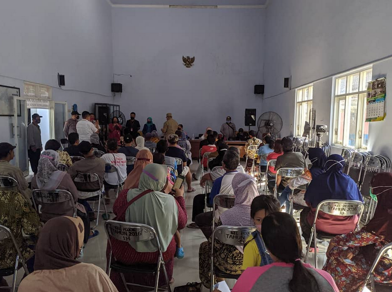 Hari ini balai kantor kelurahan pojok terlihat ramai. Jadi, hari ini (7/5) adalah hari penyaluran Bantuan Sosial SAHABAT. Penyaluran dilakukan sesuai dengan protokol kesehatan, dengan tetap menggunakan masker dan tetap menjaga jarak