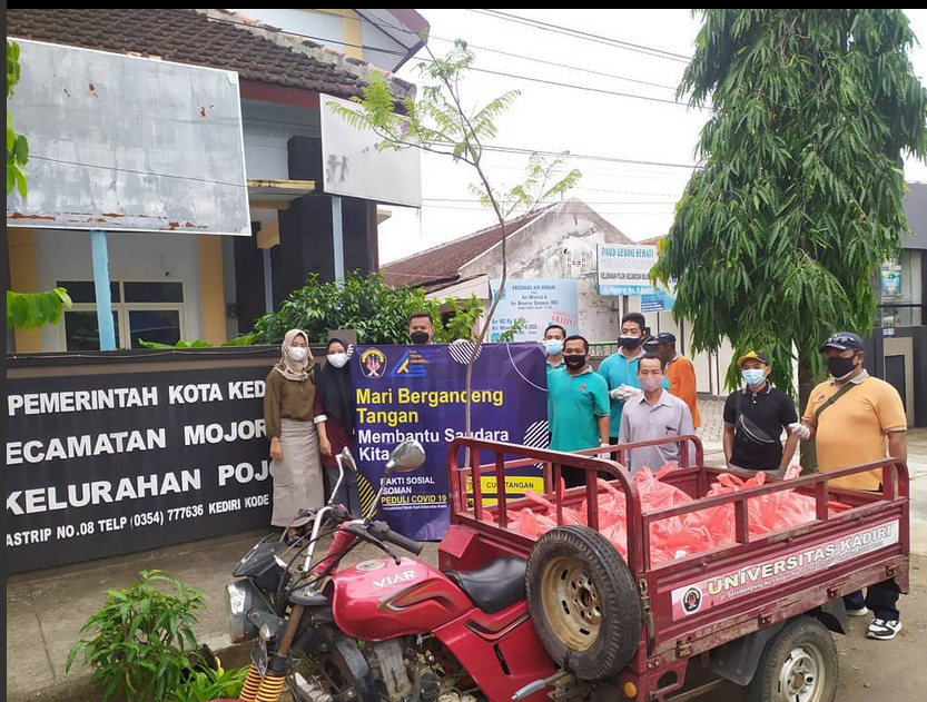 Penyaluran dilakukan oleh perwakilan dari Universitas Kadiri didampingi oleh petugas posko PPKM Mikro kelurahan pojok